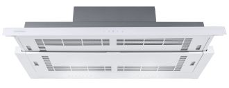 - Выдвижная передняя панель – при необходимости панель удлиняется на 15 см, увеличивая рабочую зону захвата пара и запахов. В нерабочем состоянии полностью скрыта в шкафу, сохраняя безупречный вид кухонного гарнитура.