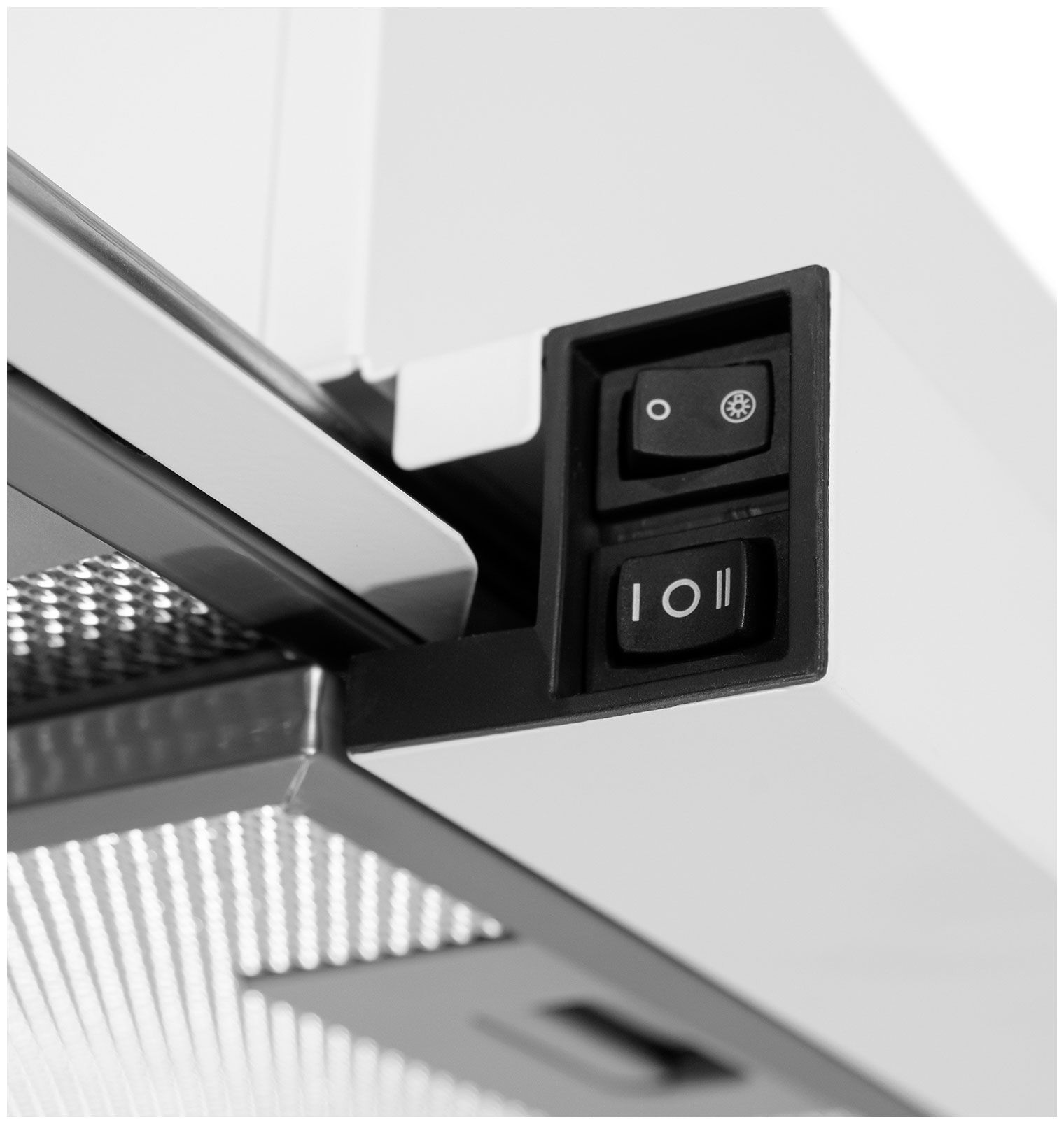 - Эксклюзивный дизайн с отделкой стеклом – элегантный белый цвет в сочетании с отделкой из стекла придаёт вытяжке изысканный и современный вид. Модель становится стильным акцентом кухни, гармонично вписываясь в любой интерьер.