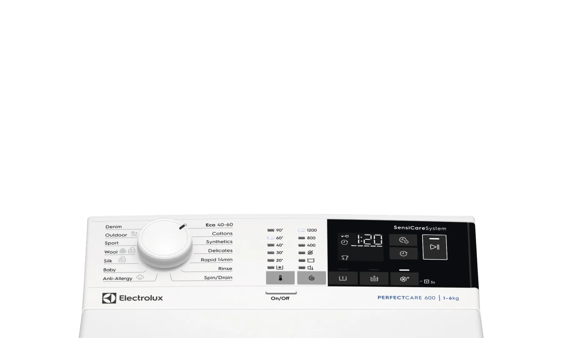 Стиральная машина Electrolux EW6TN14262 из серии PerfectCare 600 сочетает вертикальную загрузку и компактные габариты (40×60×85 см) с интеллектуальными функциями для безупречного ухода за бельем. Произведенная в Евросоюзе, модель оснащена LCD-дисплеем и электронным управлением в классическом белом корпусе.
