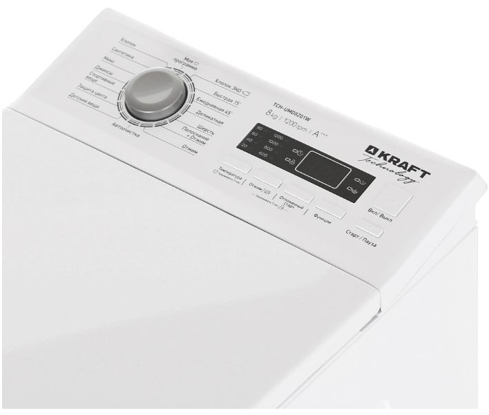 Вертикальная стиральная машина Kraft TCH-UMD8201W — вместительная загрузка 8 кг с инверторным мотором и 16 программами