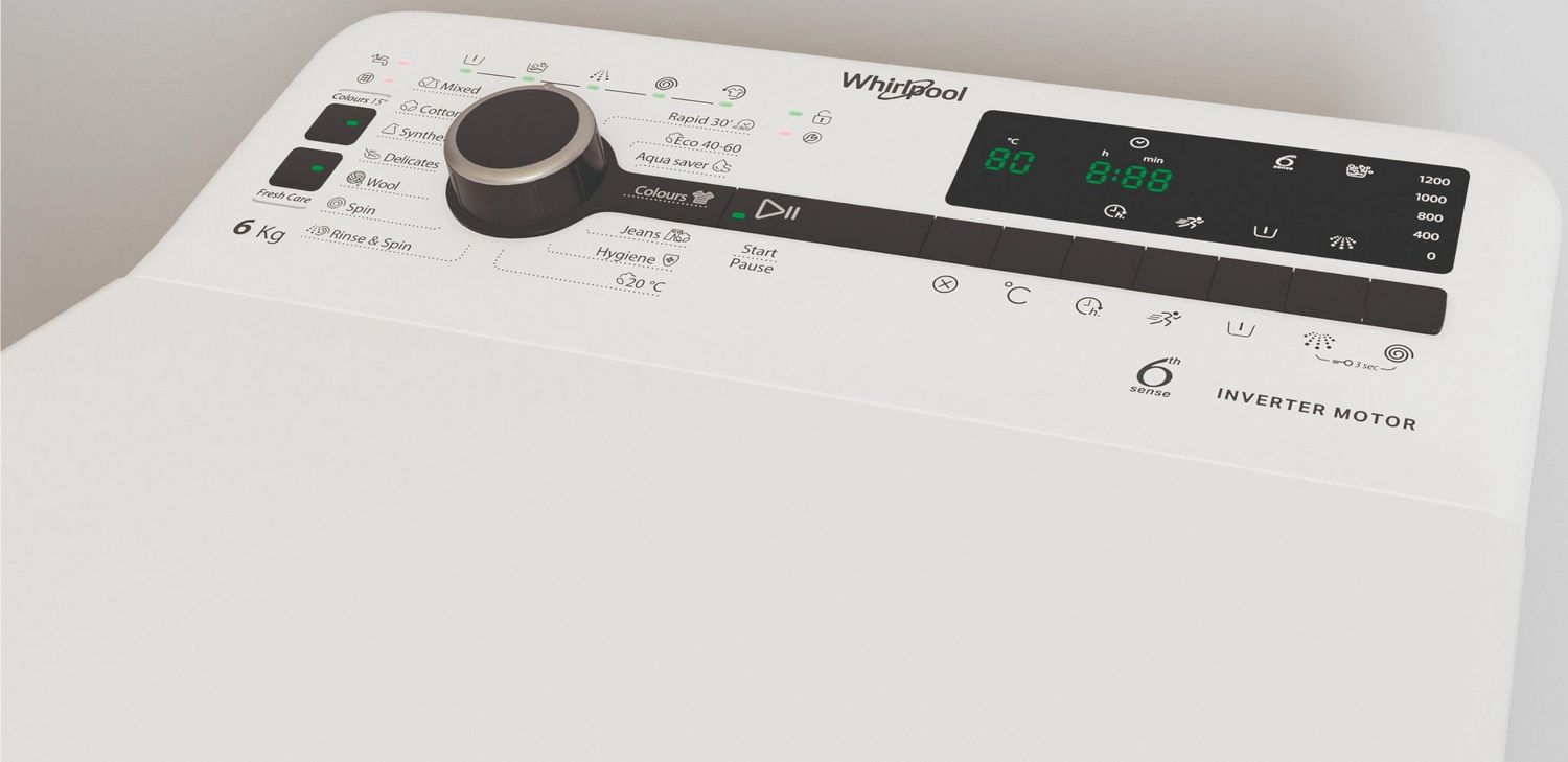 Стиральная машина Whirlpool TDLRB 6252BS – узкая вертикальная загрузка, экономичный расход и надежный инверторный мотор