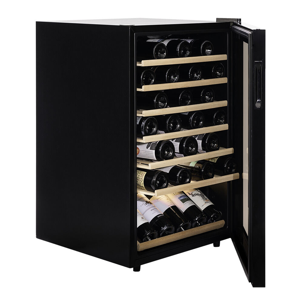 Винный шкаф Dunavox DXFH-48.130 – это компактное отдельностоящее решение в классическом черном корпусе. Модель сочетает лаконичный дизайн, простоту управления и базовые технологии для правильного хранения винной коллекции до 48 бутылок.