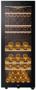 - 7+1 деревянных полок из бука (без лака) – натуральное дерево не впитывает запахи, не выделяет вредных веществ и не образует конденсат, сохраняя этикетки в идеальном состоянии. Полки также гасят вибрации, обеспечивая полный покой для созревания вин.