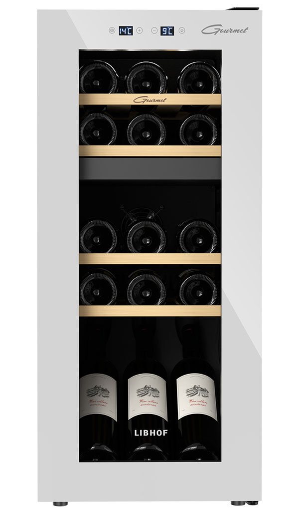 Винный шкаф Libhof GMD-15 White – компактный двухзонный шкаф для 15 бутылок в белом корпусе