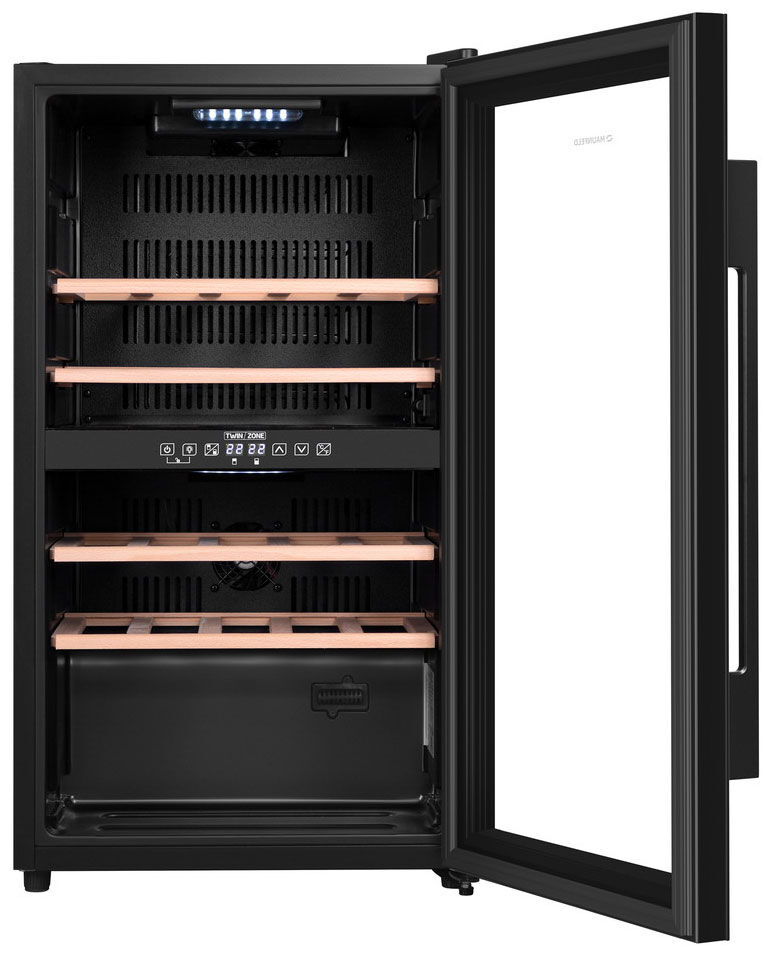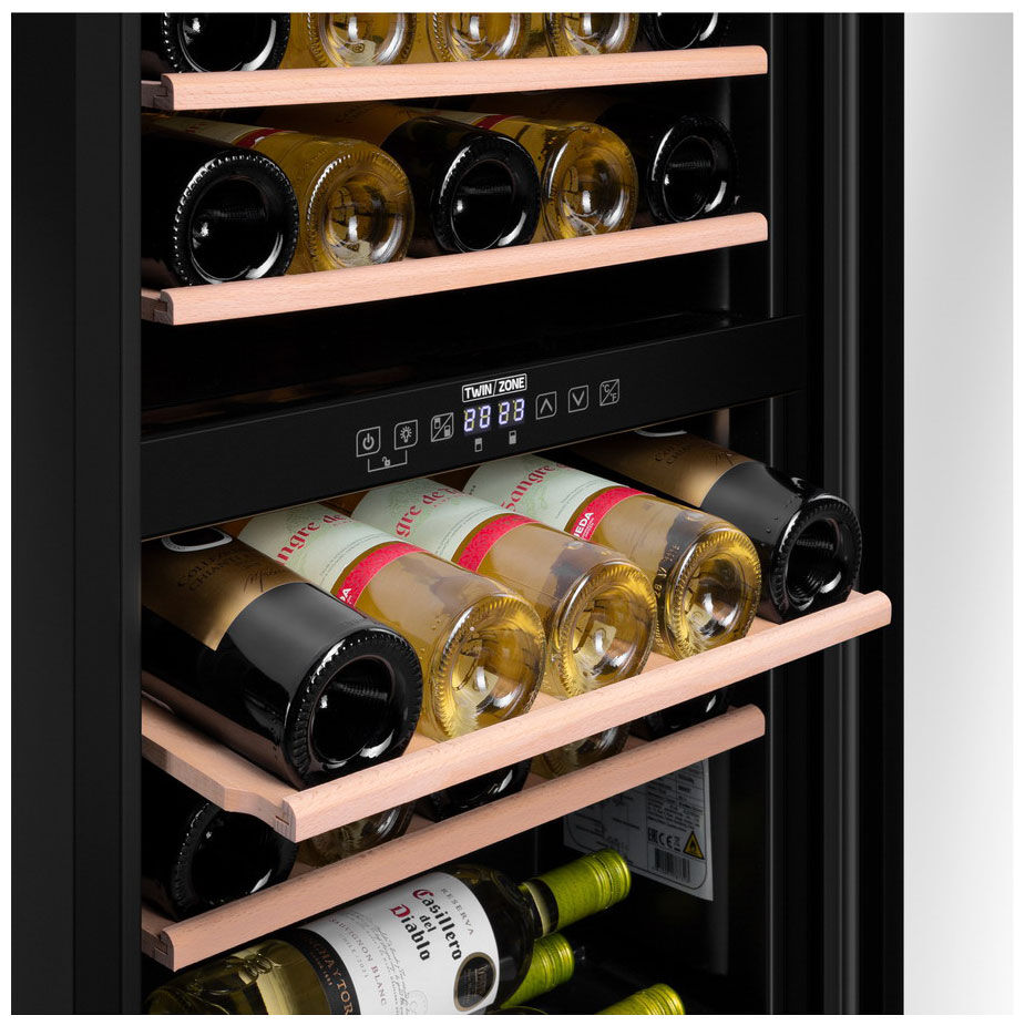 - Универсальность для смешанной коллекции – наличие двух раздельных климатических зон делает шкаф идеальным выбором для тех, кто ценит разные типы вин и хочет обеспечить каждому из них идеальные условия хранения и подготовки к подаче.