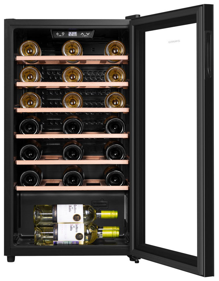 Винный шкаф Maunfeld MFWC-85S34 – компактный однозонный погреб для коллекции до 34 бутылок