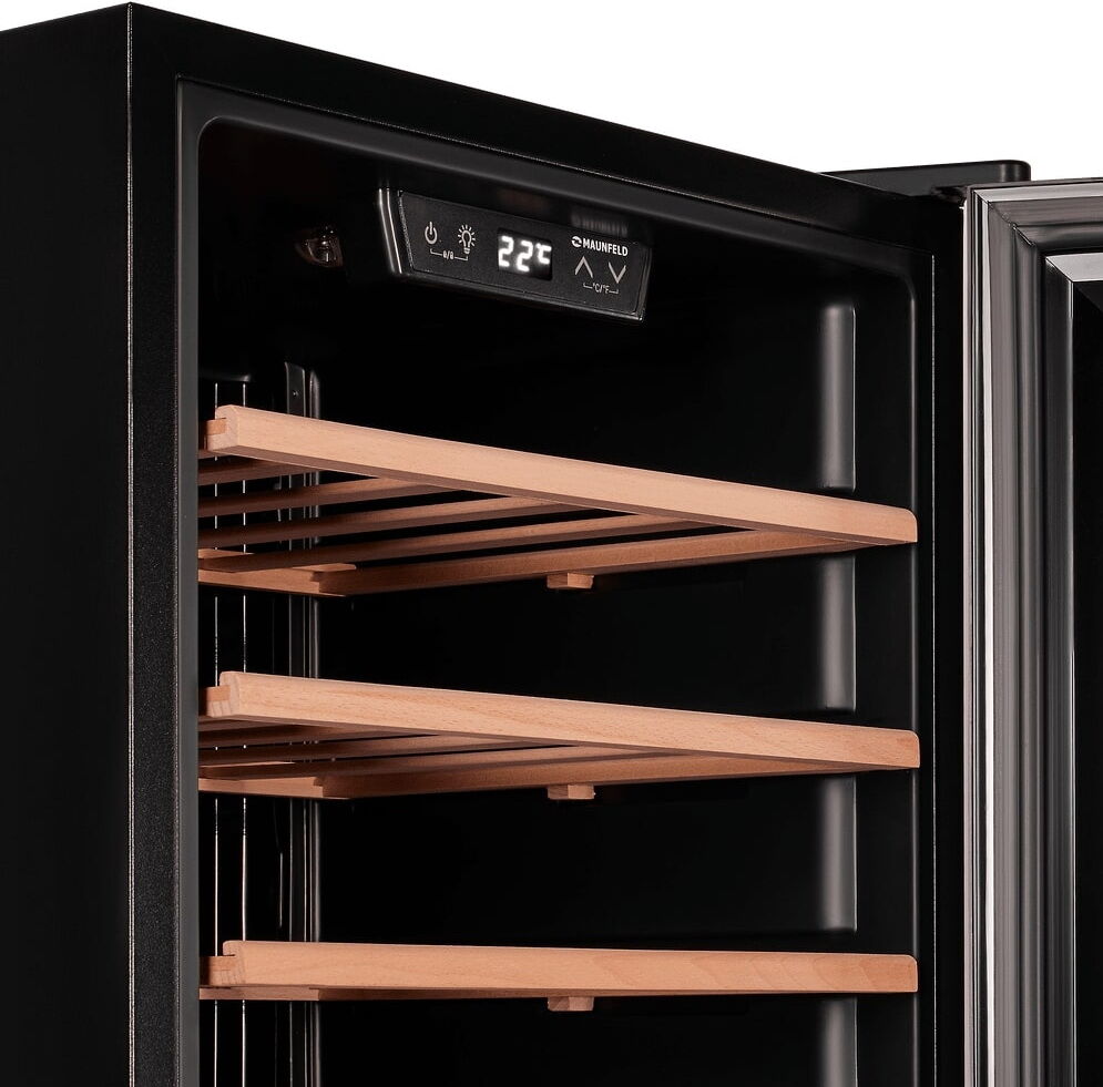 Винный шкаф Maunfeld MFWC-85SB34 – компактный «погреб» для 34 бутылок с элегантной подачей и точным контролем