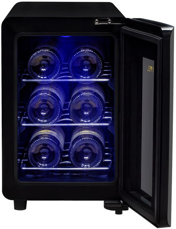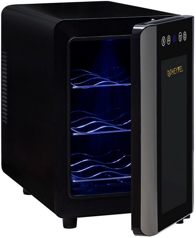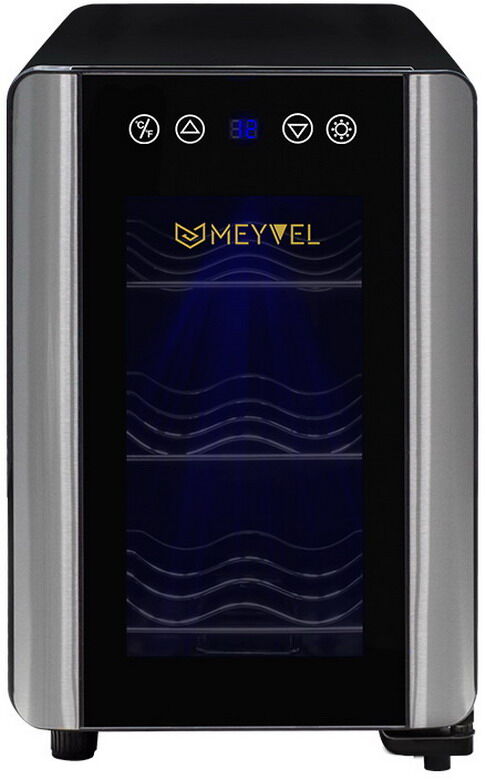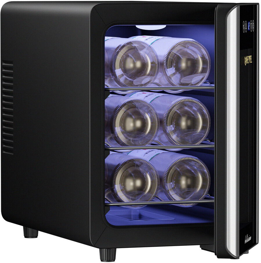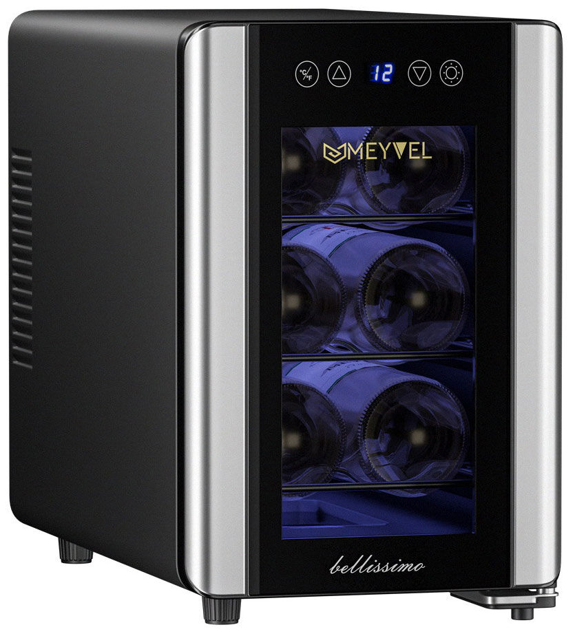 Винный шкаф Meyvel MV06-BSF1 (easy) – миниатюрный термоэлектрический шкаф с резервуаром для воды и зеркальной дверцей на 6 бутылок