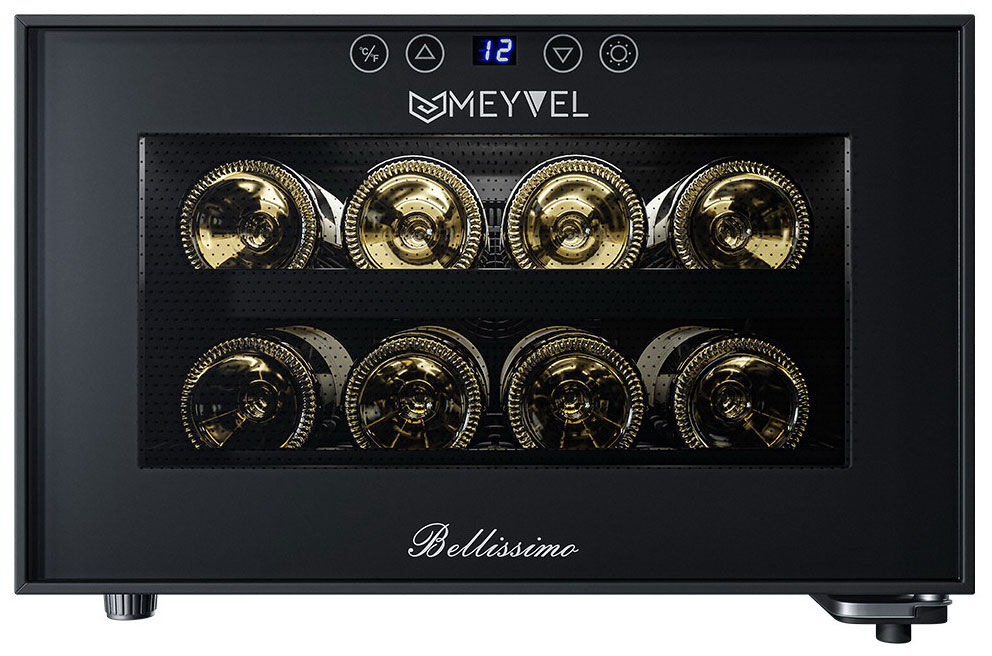 Винный шкаф Meyvel MV08-BF1 (easy) – ультракомпактный термоэлектрический шкаф на 8 бутылок с демонстрационным режимом подсветки