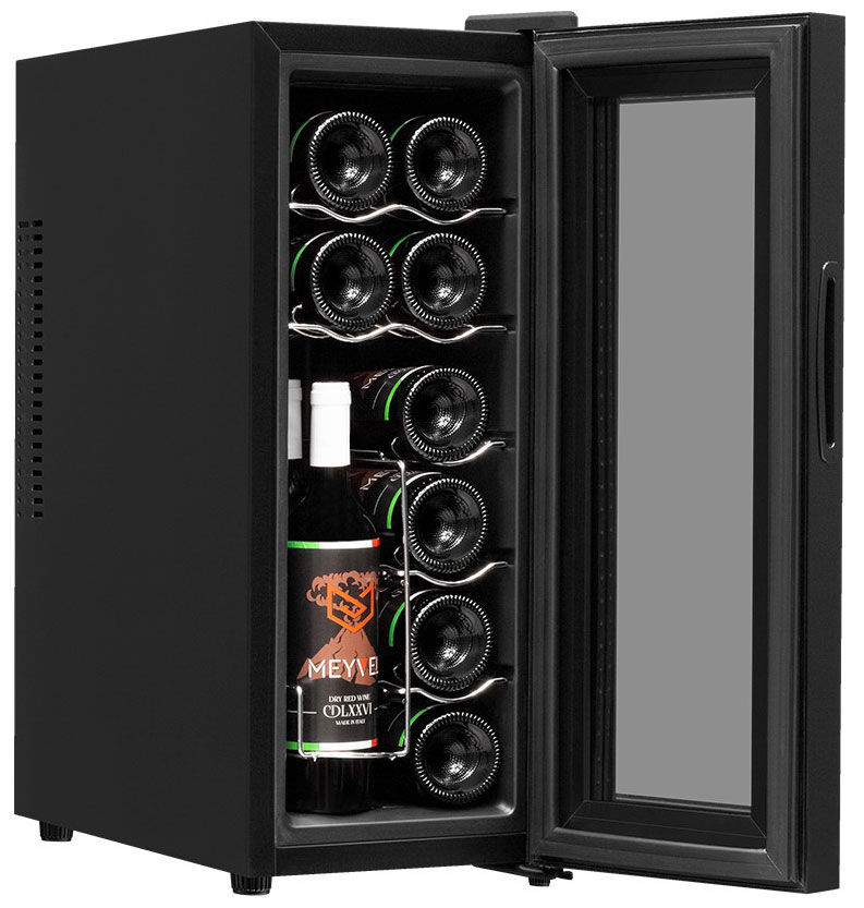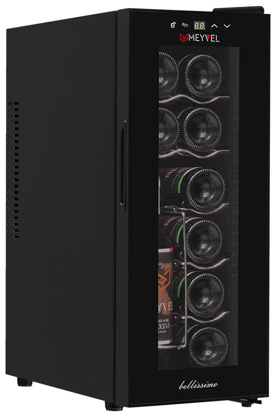 Винный шкаф Meyvel MV12-TBD1 – узкий термоэлектрический шкаф с вертикальным хранением и демонстрационным режимом на 12 бутылок