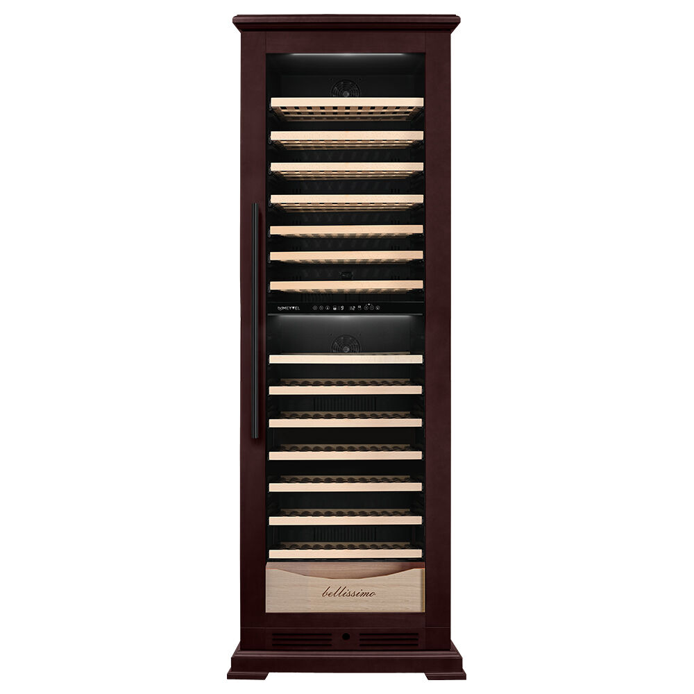Винный шкаф Meyvel MV163PRO-KBT2 в обшивке «Спелая вишня» – двухзонный гигант для 174 бутылок в элегантном вишнёвом исполнении
