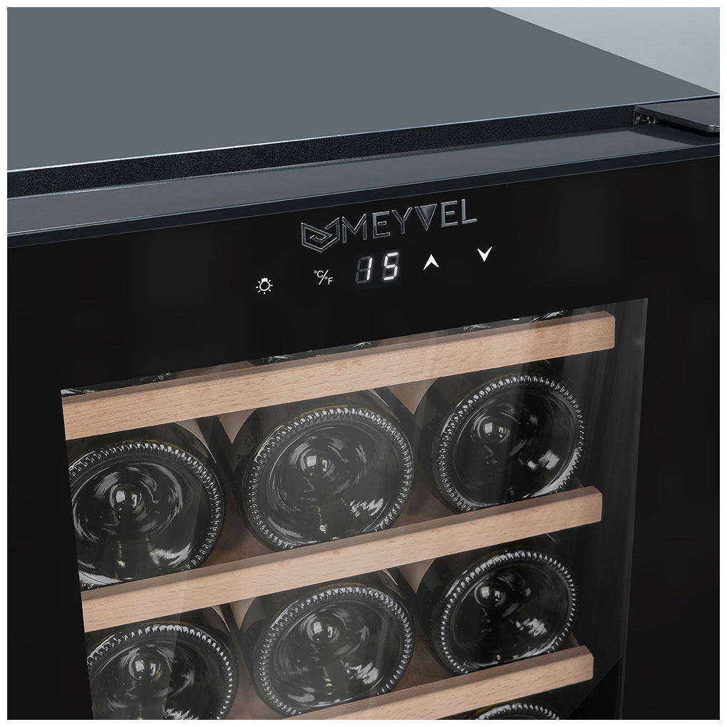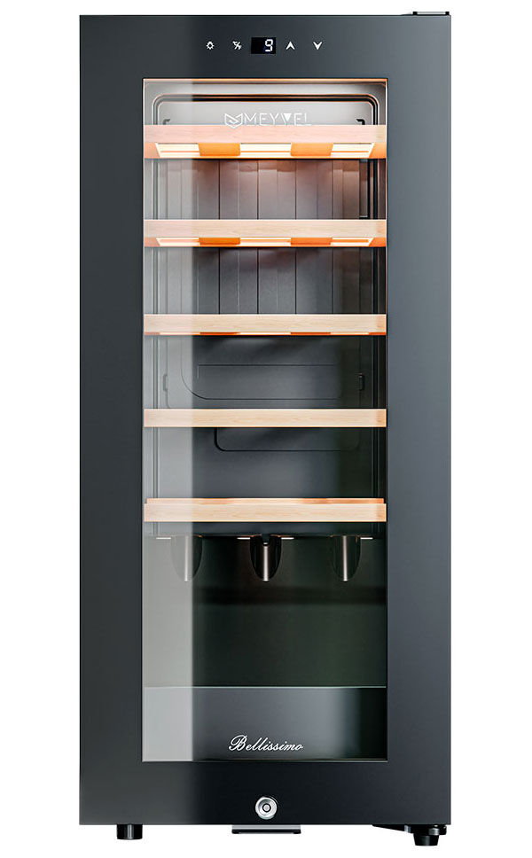 Винный шкаф Meyvel MV18-KBF1 – тихий компрессорный шкаф на 18 бутылок с тройным стеклом и демонстрационной полкой