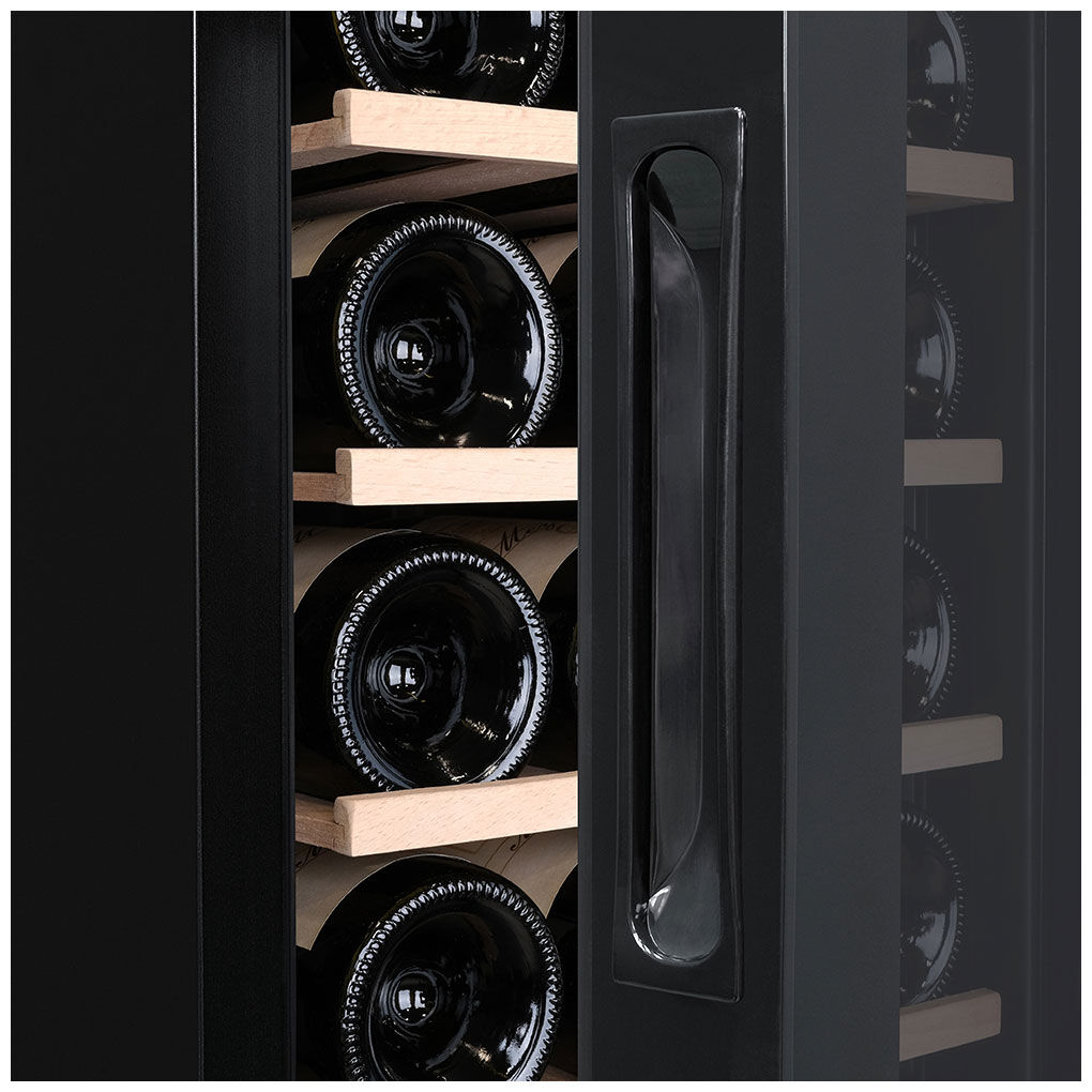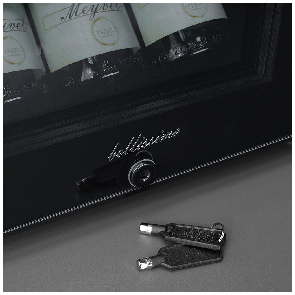 - Усиленная защита от ультрафиолета тройным стеклом – дверца изготовлена из трёх слоёв стекла с УФ-фильтром, что обеспечивает максимально возможную защиту коллекции от вредного солнечного излучения, сохраняя вкус и аромат вин даже при размещении шкафа в освещённом помещении.