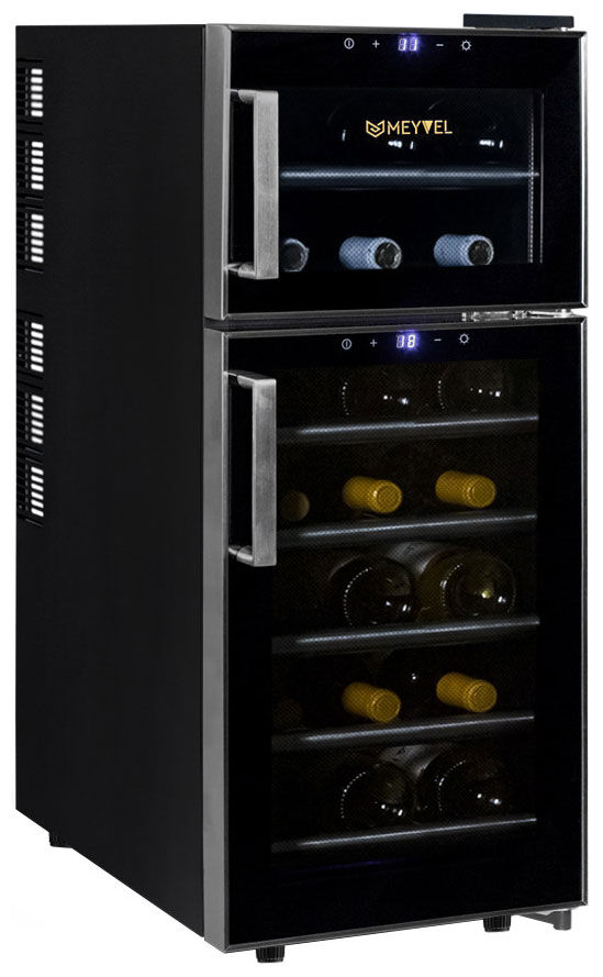 Винный шкаф Meyvel MV21-BF2 (easy) – двухзональный термоэлектрический шкаф на 21 бутылку с автодоводчиком двери