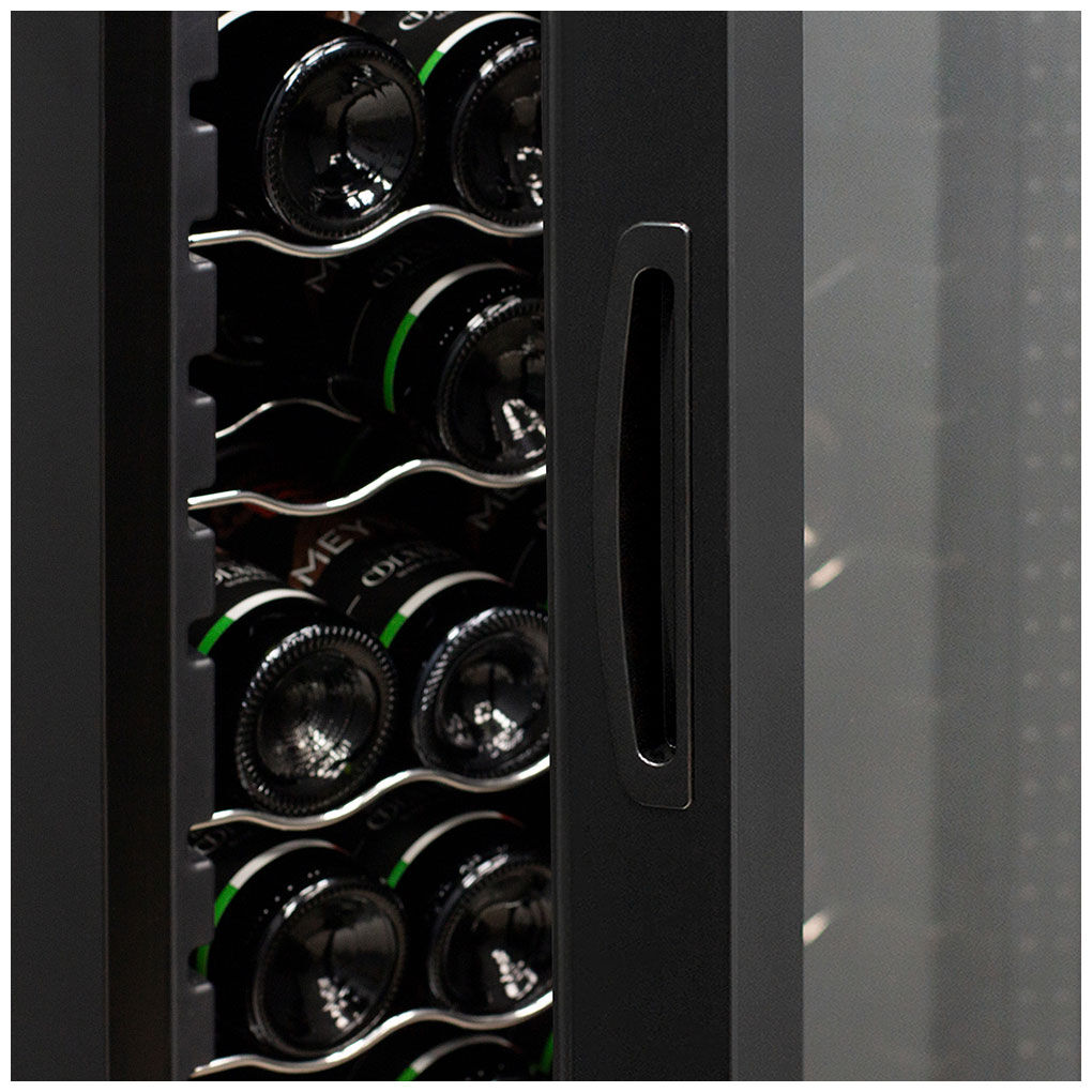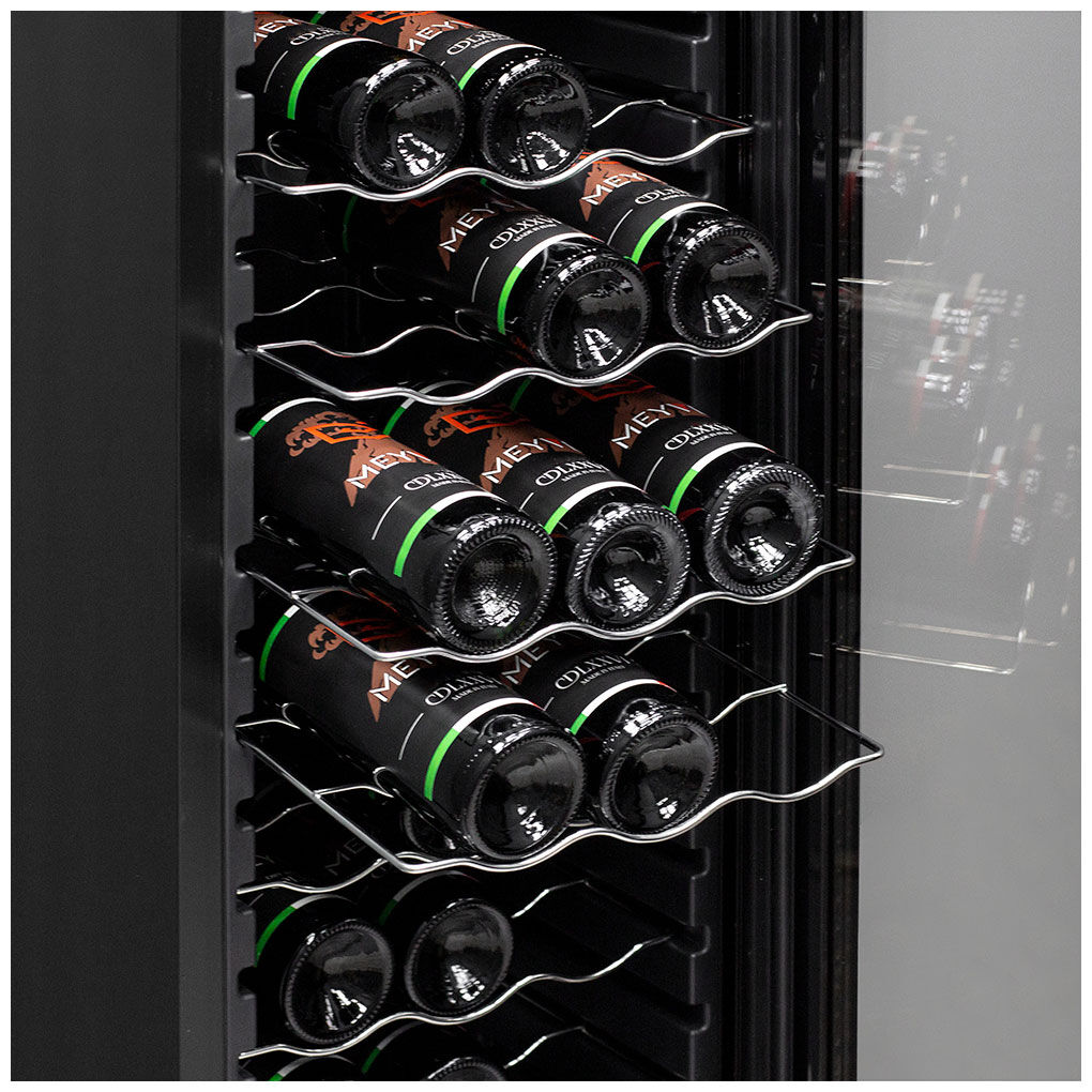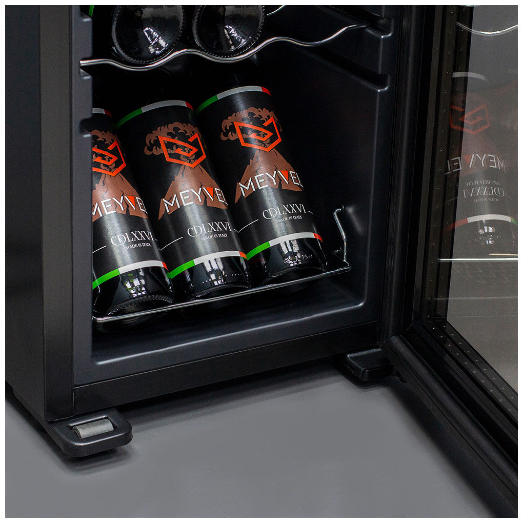 Винный шкаф Meyvel MV27-CBD1 – высокий однозональный шкаф на 27 бутылок с демонстрационной полкой и хромированными полками