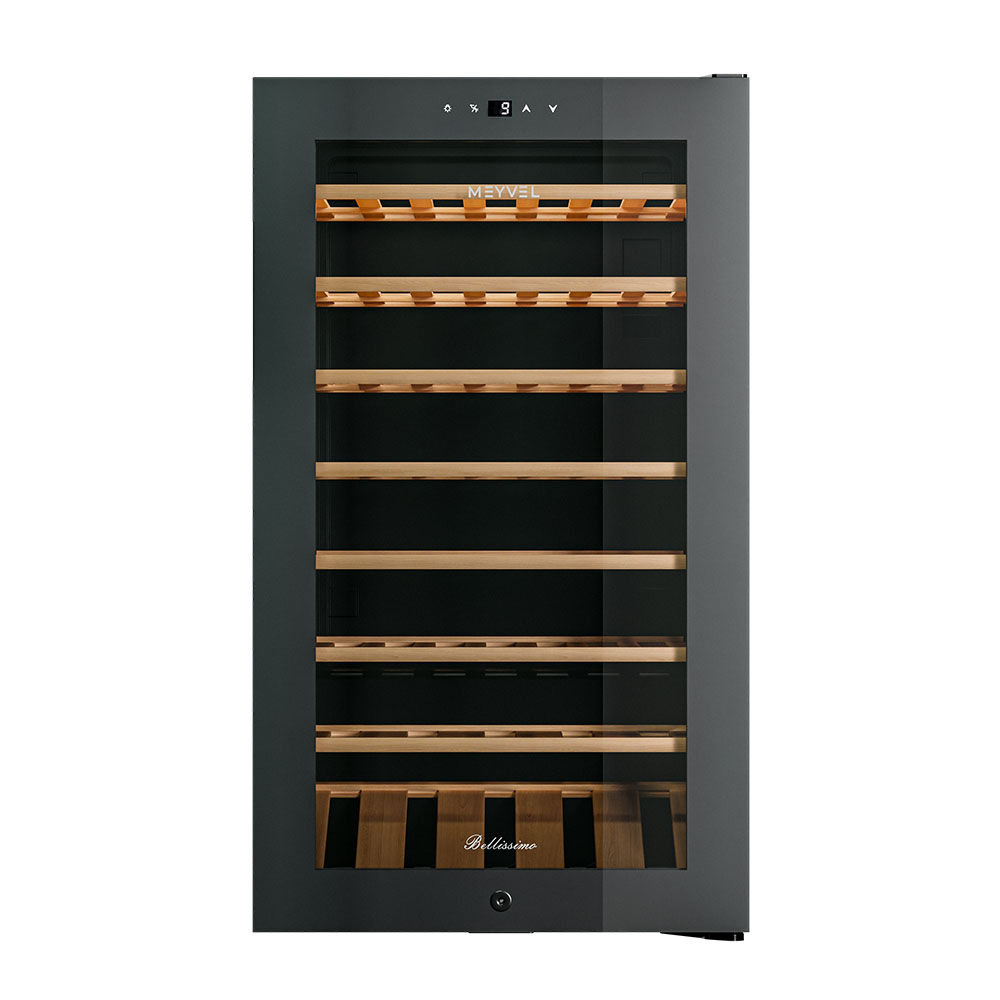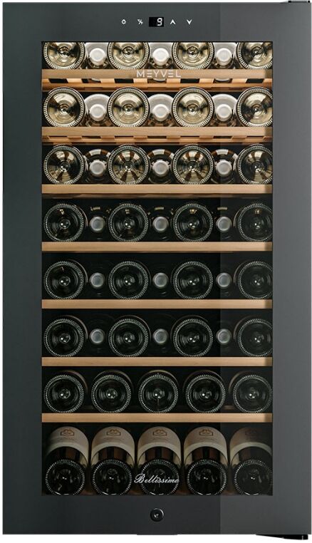 Винный шкаф Meyvel MV52-KBF1 – тихий компрессорный шкаф на 52-56 бутылок с демонстрационной полкой и статическим охлаждением