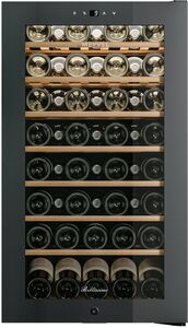 - Гибкость под разные задачи – можно выбрать между режимом «витрина» с демонстрационной полкой (52 бутылки) и режимом «максимальная вместимость» (56 бутылок), что актуально как для демонстрации в баре, так и для компактного хранения в домашней винотеке.