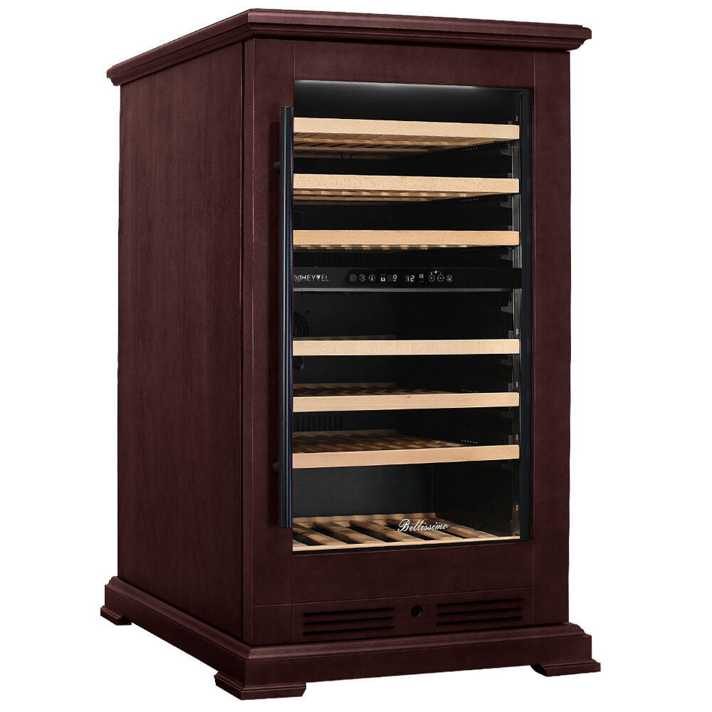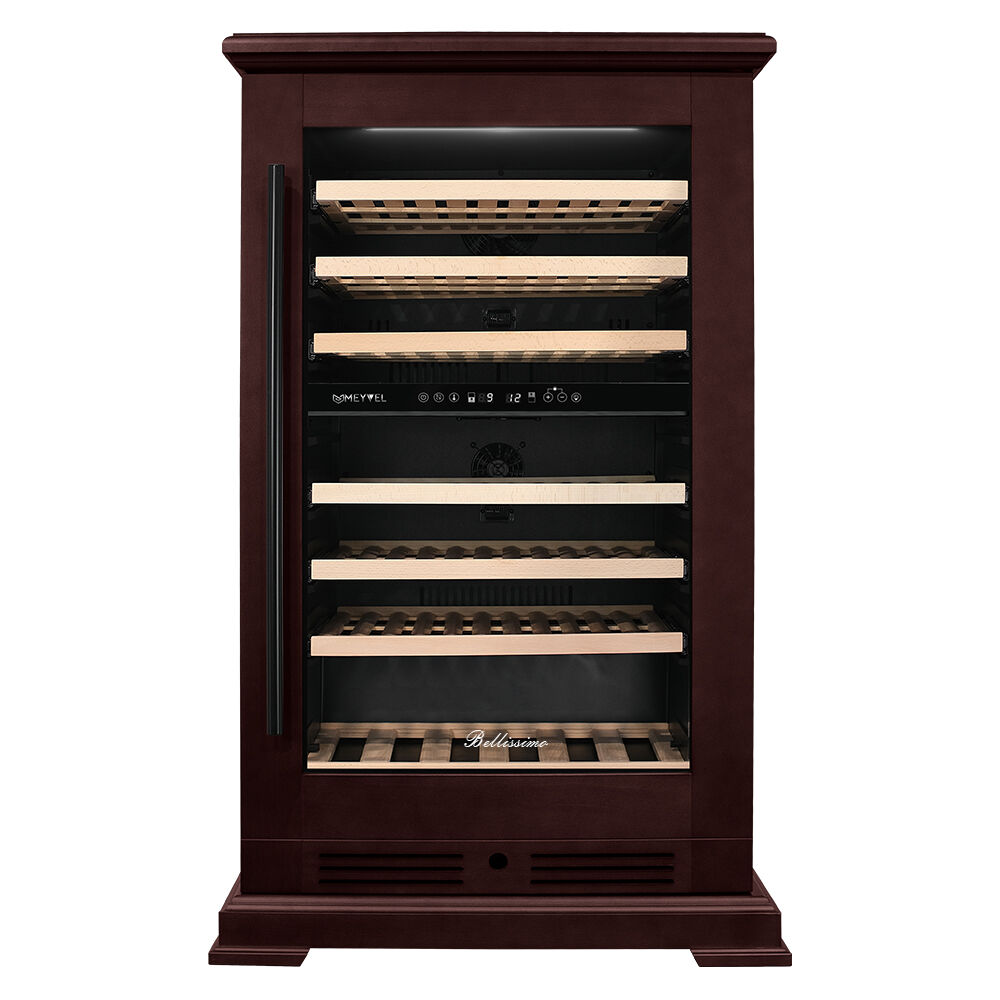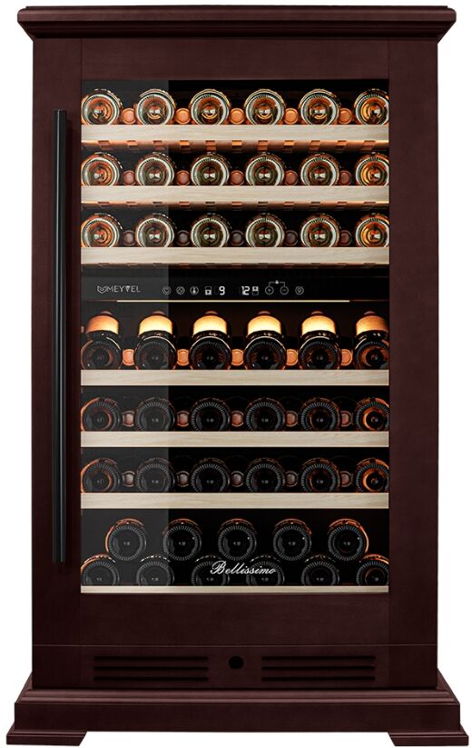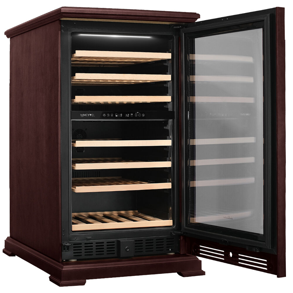 Винный шкаф Meyvel MV77PRO-KBT2 – двухзонный шкаф в отделке «Спелая вишня» на 77 бутылок