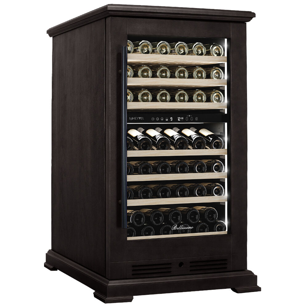Винный шкаф Meyvel MV77PRO-KBT2 – двухзонный шкаф в отделке «Тёмный шоколад» на 77 бутылок