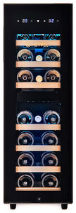 - Две независимые климатические зоны – верхняя зона (+5°C … +12°C) оптимизирована для белых, розовых и игристых вин, а нижняя зона (+12°C … +20°C) создана для красных вин. Система обеспечивает раздельное профессиональное хранение разных типов напитков в одном корпусе.