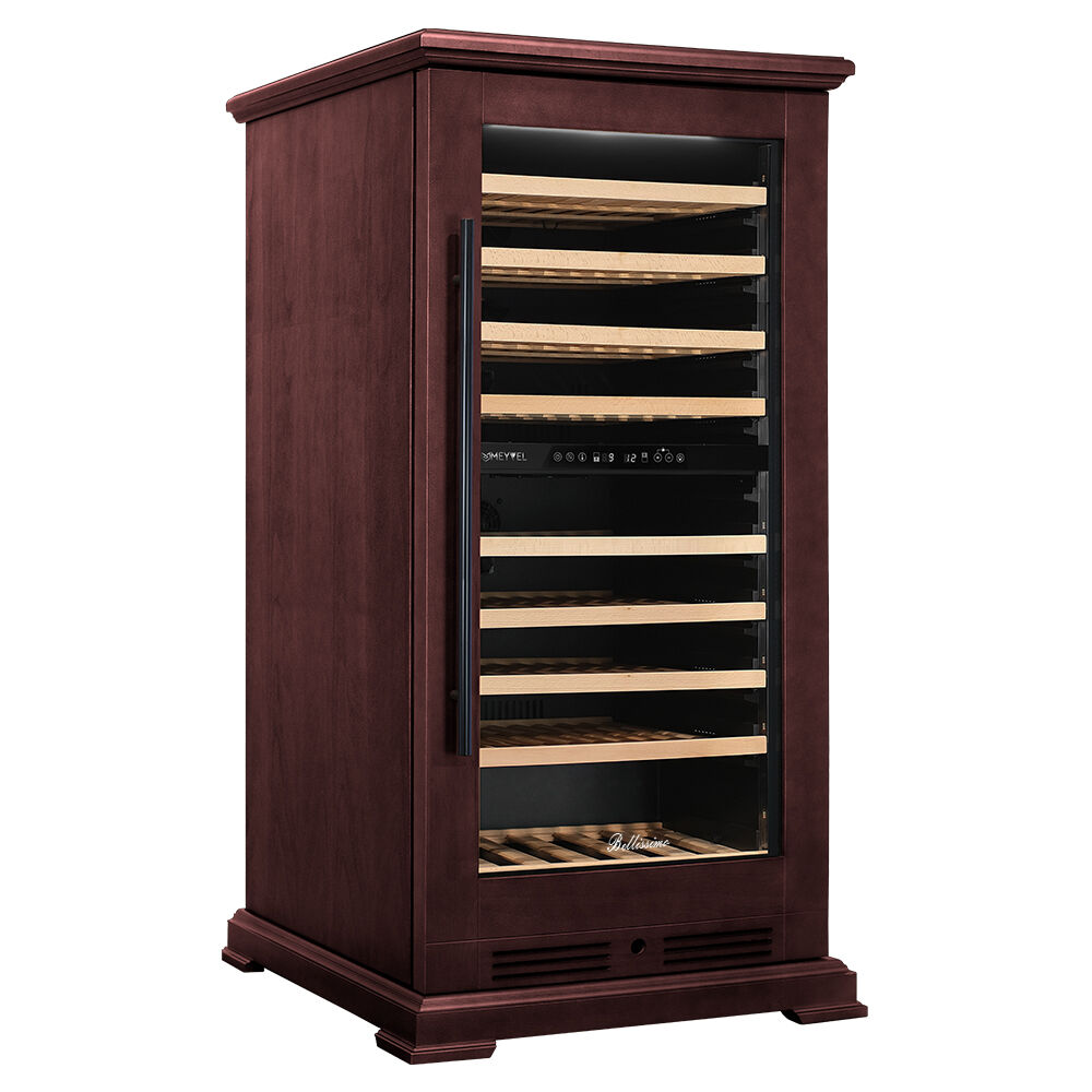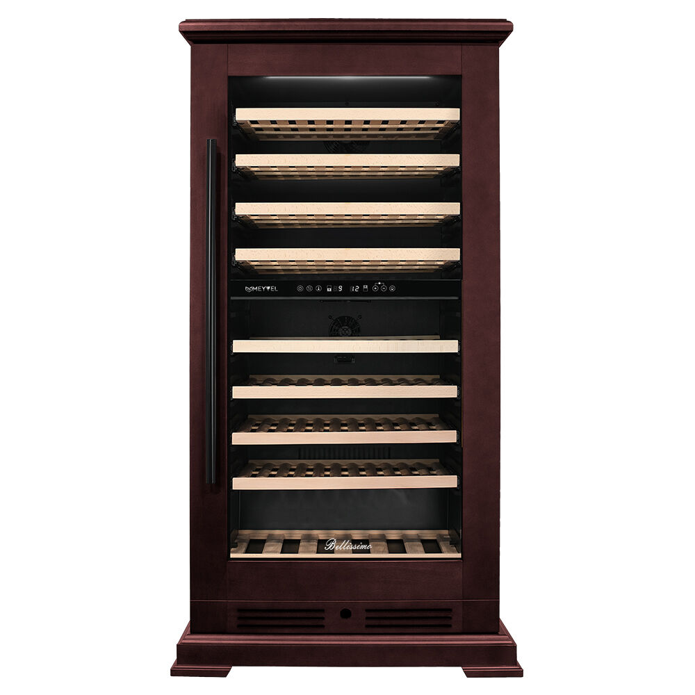 Винный шкаф Meyvel MV99PRO-KBT2 – двухзонный шкаф в отделке «Спелая вишня» на 99 бутылок