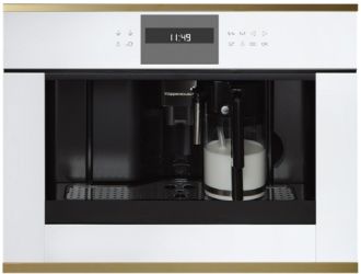 Встраиваемая кофемашина Kuppersbusch CKV 6550.0 W4 Gold — золотая роскошь на белом фоне и интеллектуальная функциональность