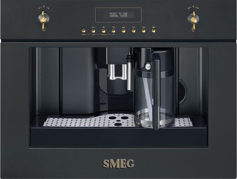 Встраиваемая кофемашина Smeg CMS8451A – аристократичный антрацит с латунью