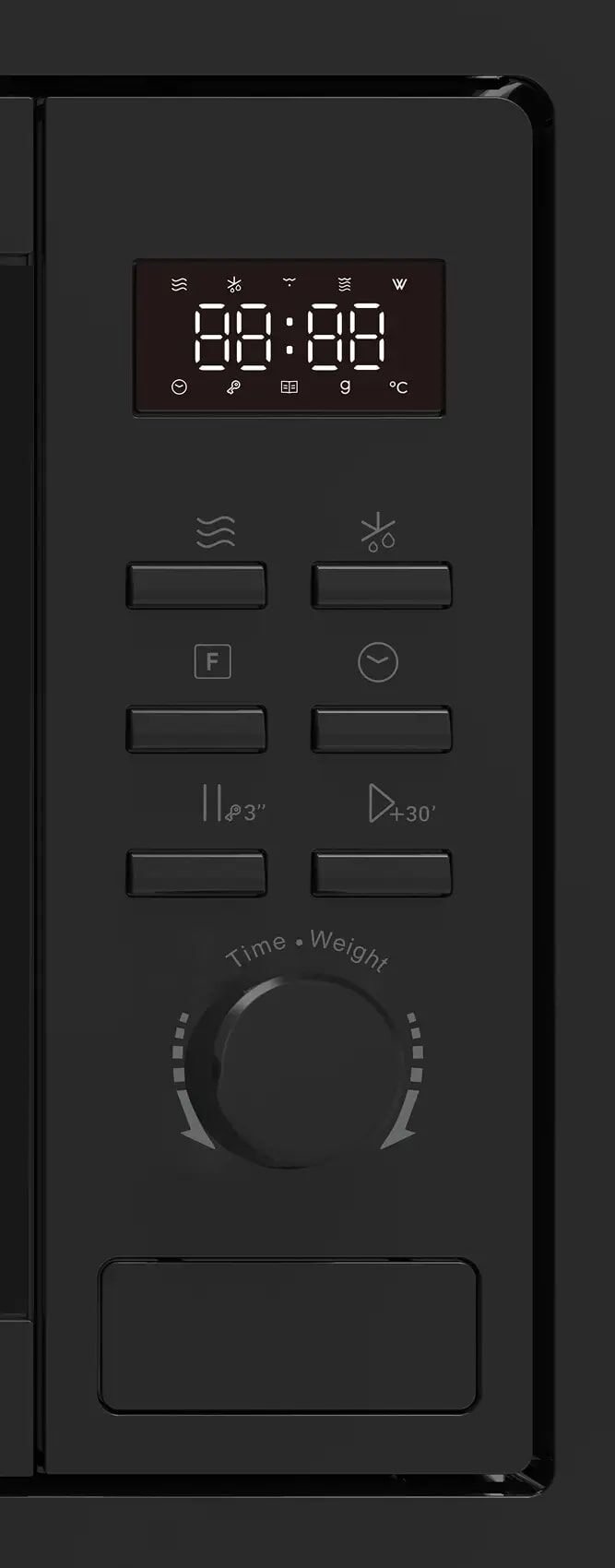 - Электронное управление с LED-дисплеем – электронная панель с кнопками и поворотным переключателем обеспечивает удобное управление. На LED-дисплее отображается время, выбранный режим и другая информация.