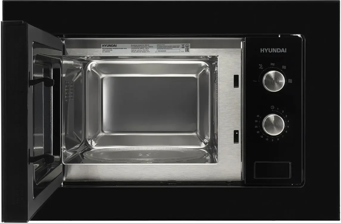 Встраиваемая микроволновая печь Hyundai HBW 2030S BG – механическое управление, автоматическая разморозка и компактная ниша 32 см