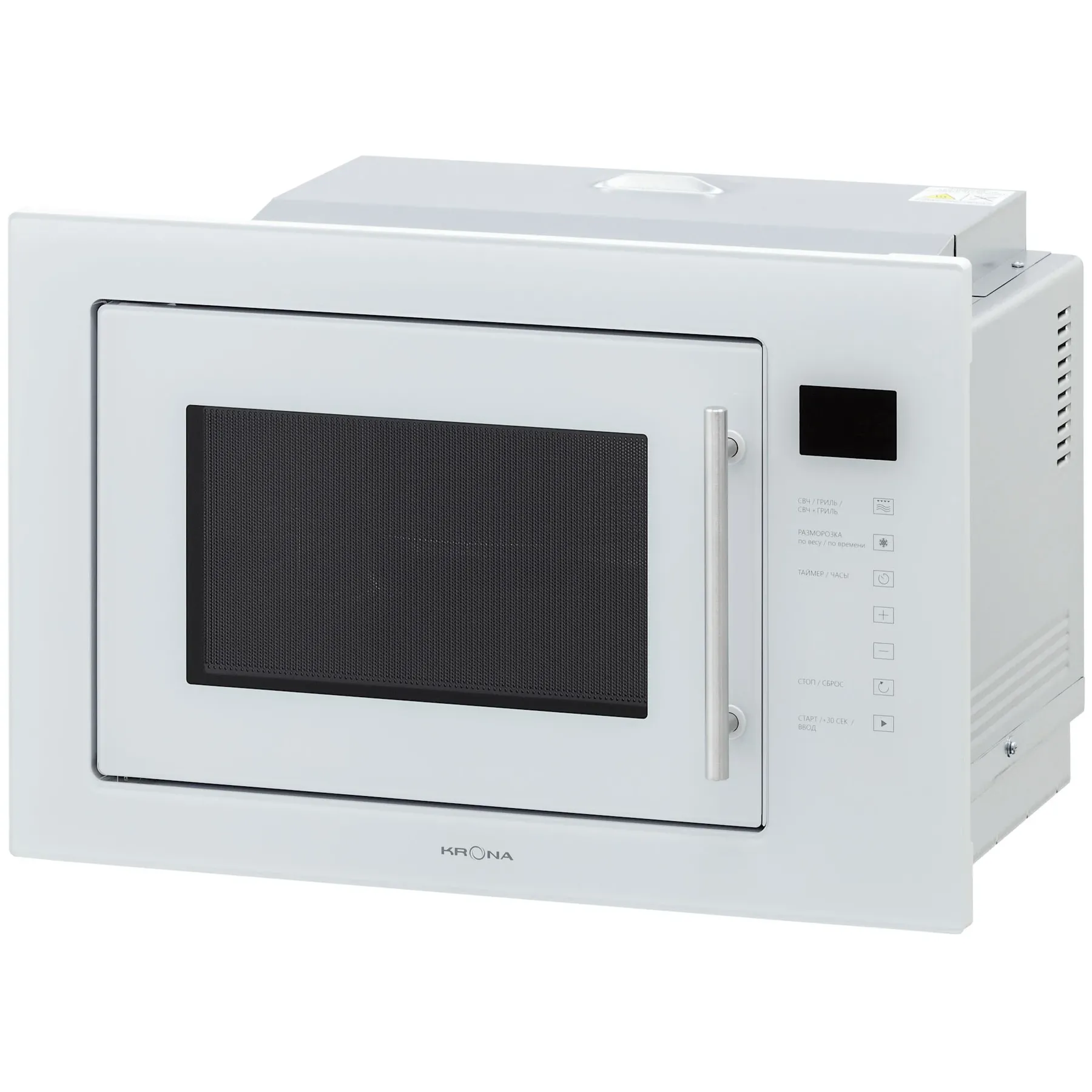 Микроволновая печь Krona RIFLESSO 60 WH V2 – стильная модель 25 л с кварцевым грилем и 8 автопрограммами в белом стекле