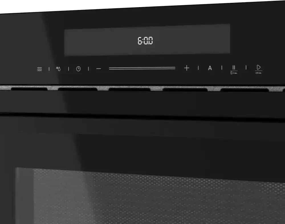 - Стильный дизайн High-Tech – чёрное стекло на дверце и панели управления в сочетании с чёрной фурнитурой создаёт элегантный и технологичный образ, который станет украшением современной кухни.