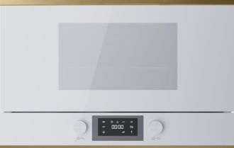 Компактная печь премиум-класса в элегантном дизайне: белое стекло и золотые акценты
