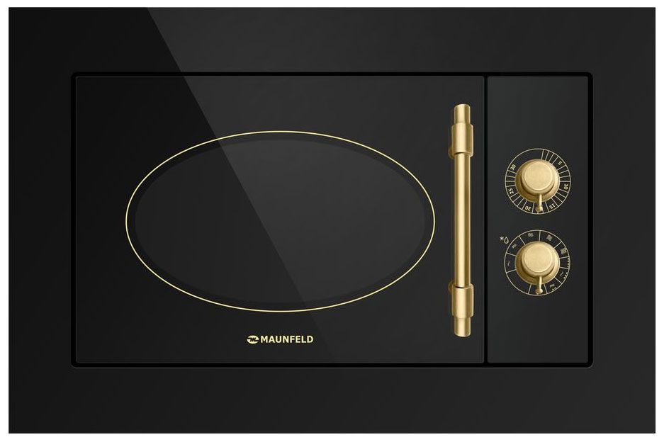 Встраиваемая микроволновая печь Maunfeld JBMO.20.5GRBG в строгом черном цвете с акцентами под матовое золото – это выбор для современной кухни, где ценятся чистые линии и надежность. Модель сочетает мощный гриль, простое механическое управление и возможность бесшовной интеграции в стандартный кухонный гарнитур.