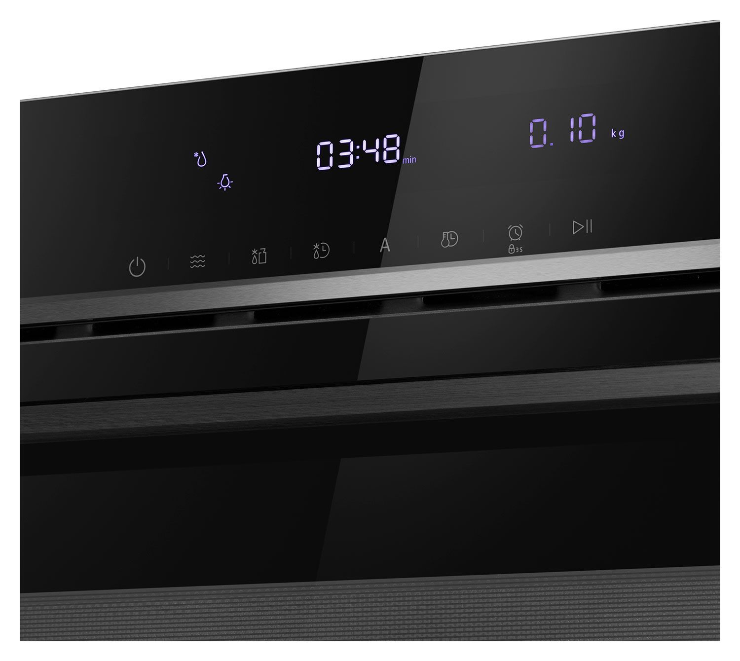 - Эксклюзивный дизайн духового шкафа — горизонтальная панель и дверца с верхним открыванием для премиальной интеграции.