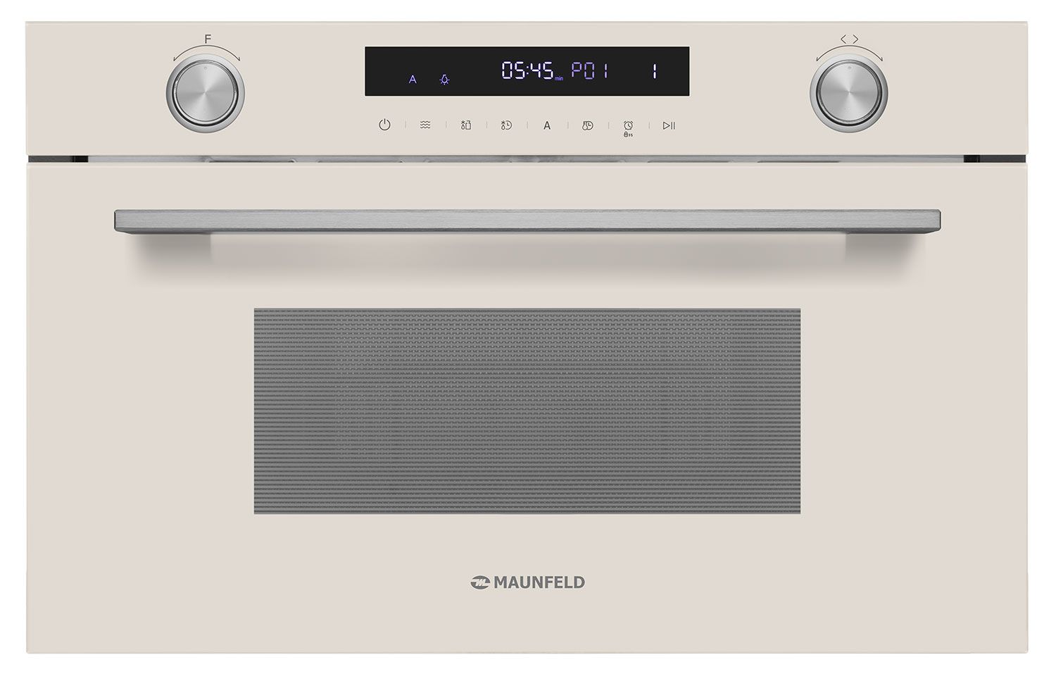 Встраиваемая микроволновая печь Maunfeld MBMO349GBG — горизонтальная панель, дизайн духового шкафа в элегантном бежевом цвете