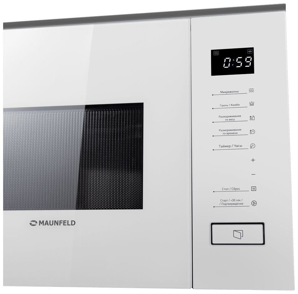 Встраиваемая микроволновая печь Maunfeld MBMO820SGW09 — сенсорный гриль, авторежимы и система очистки паром в белом цвете