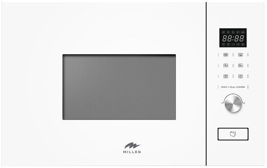 Встраиваемая микроволновая печь Millen MBW 381 WH – премиальная универсальность, белоснежный дизайн, гриль 1000 Вт и 8 автопрограмм