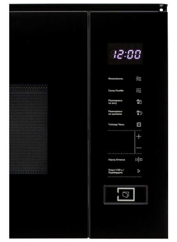 Электронное управление и цифровой дисплей — удобный интерфейс с таймером, 5 уровнями мощности микроволн (до 800 Вт) и функцией отложенного старта.