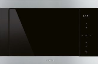 Полностью встраиваемая микроволновая печь Smeg FMI325X из коллекции Classica в корпусе из матовой нержавеющей стали с защитой Anti-Fingerprint и черным стеклом Eclipse – это топовая модель с увеличенным объемом 25 л и 6 функциями. Объединяет винтажный дизайн, кварцевый гриль и 8 автоматических программ.