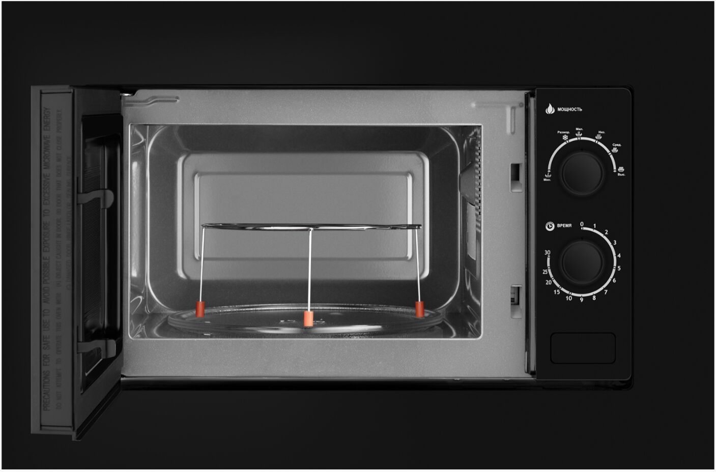 - Объём 20 литров и поворотный стол – для любых блюд – оптимальный внутренний объём 20 литров позволяет разместить посуду с самыми разными блюдами. Поворотный стол обеспечивает равномерный прогрев еды со всех сторон.