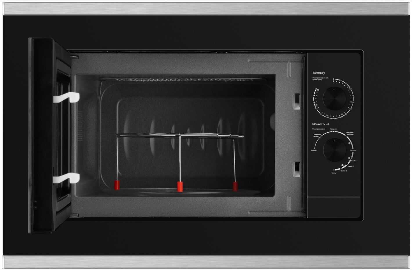 Стильная встраиваемая микроволновая печь объёмом 20 литров с грилем, комбинированными режимами, поворотным столом и механическим управлением Soft Switch