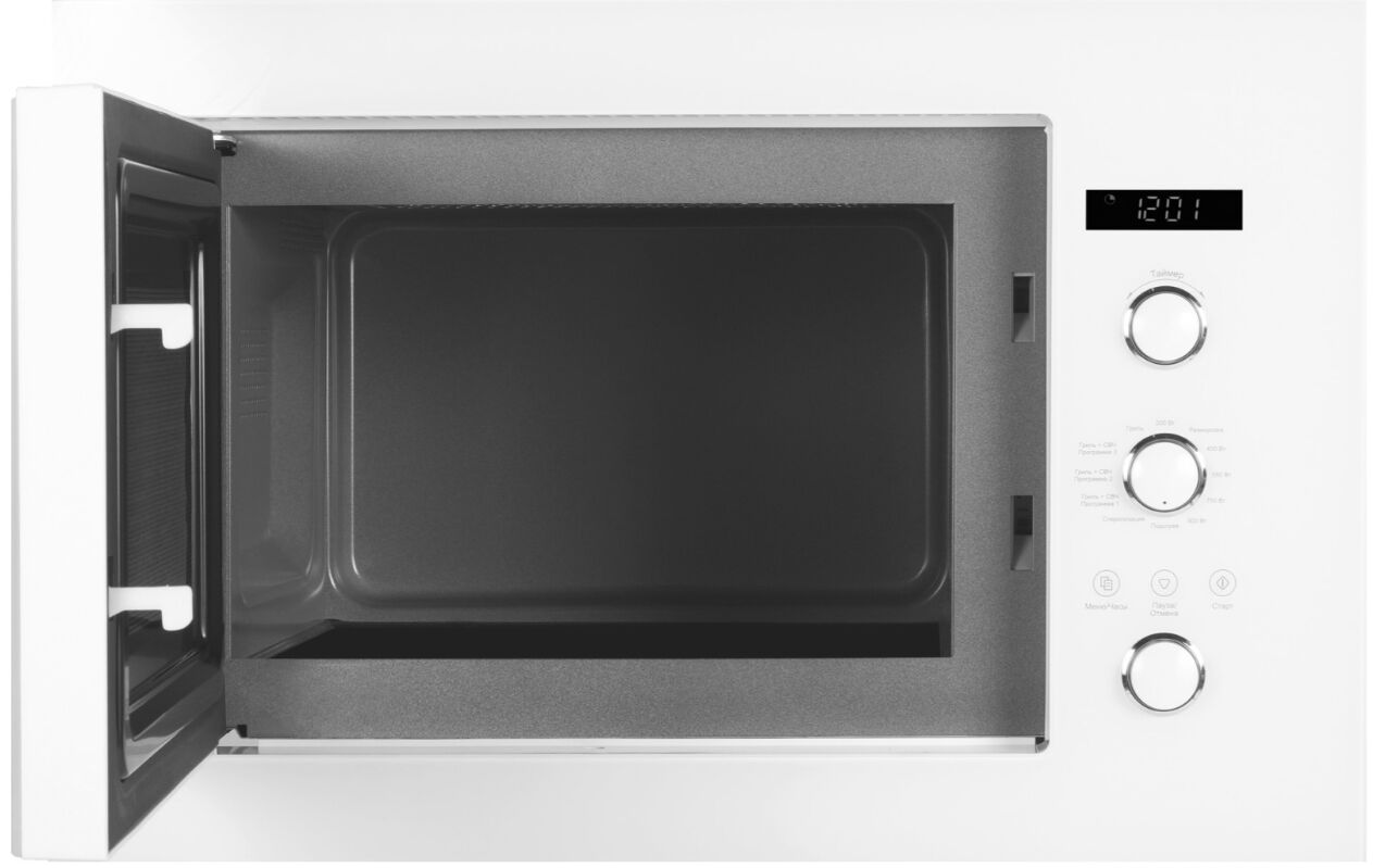 Инновационная встраиваемая микроволновая печь объёмом 25 литров с технологией равномерного нагрева без поворотного стола SPIEGEL, кварцевым грилем, биокерамическим покрытием, 11 программами автоменю и сенсорно-механическим управлением