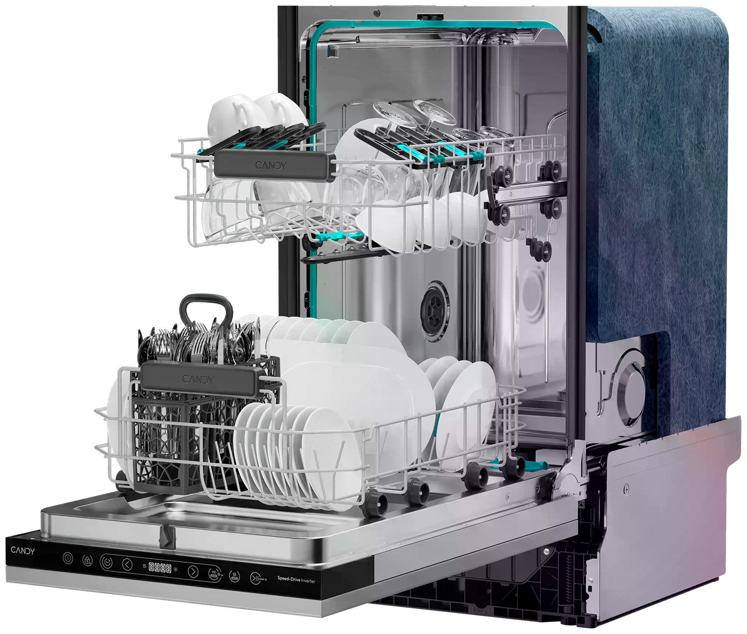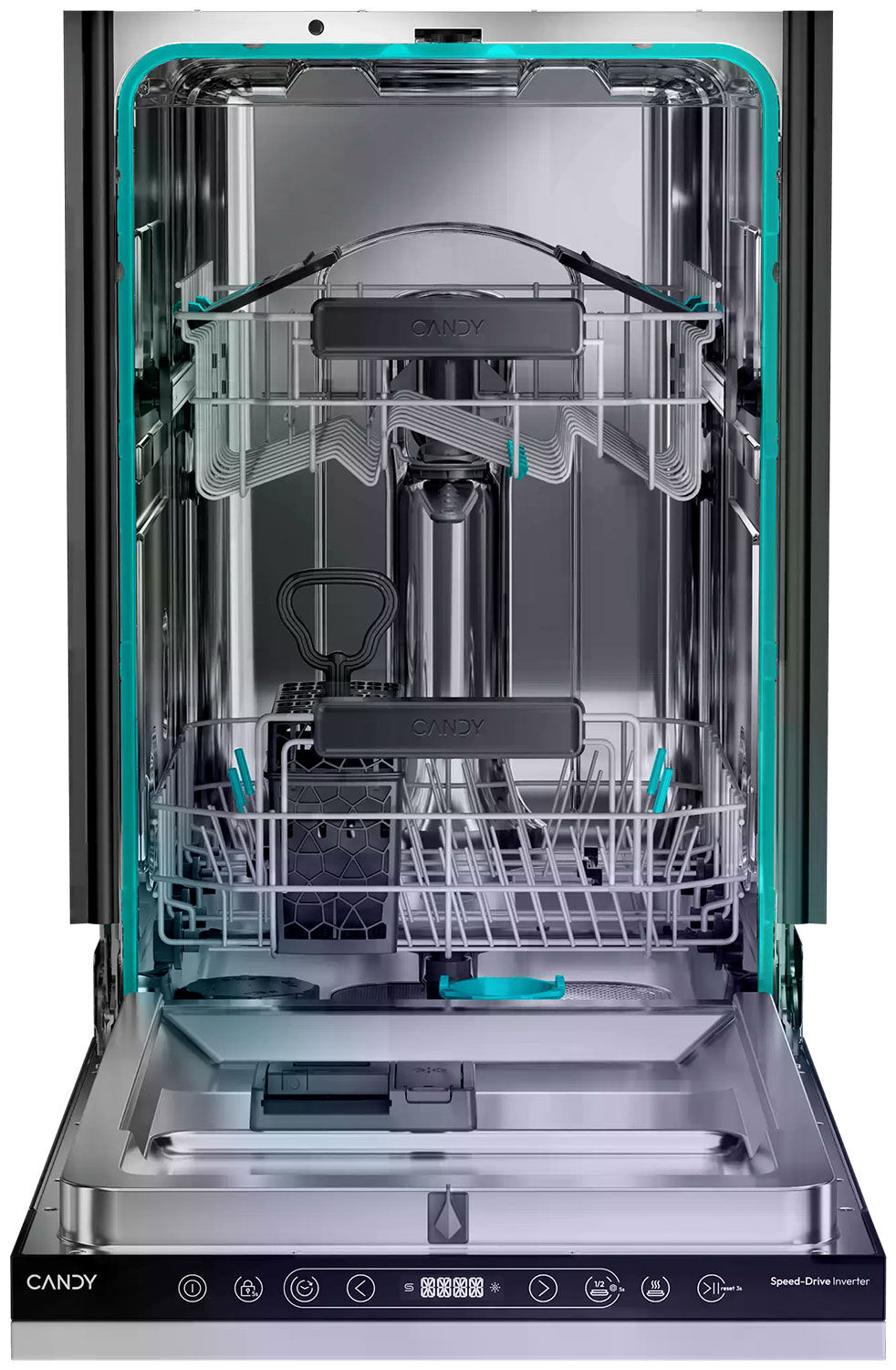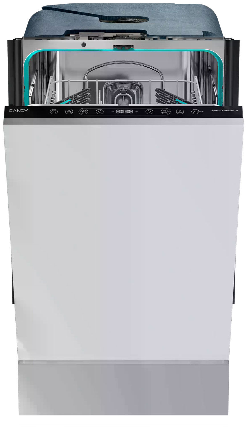 Встраиваемая посудомоечная машина Candy CI 0A7F0B-08 – узкая модель 45 см на 10 комплектов с инверторным мотором, 8 программами и автоматическим открыванием двери