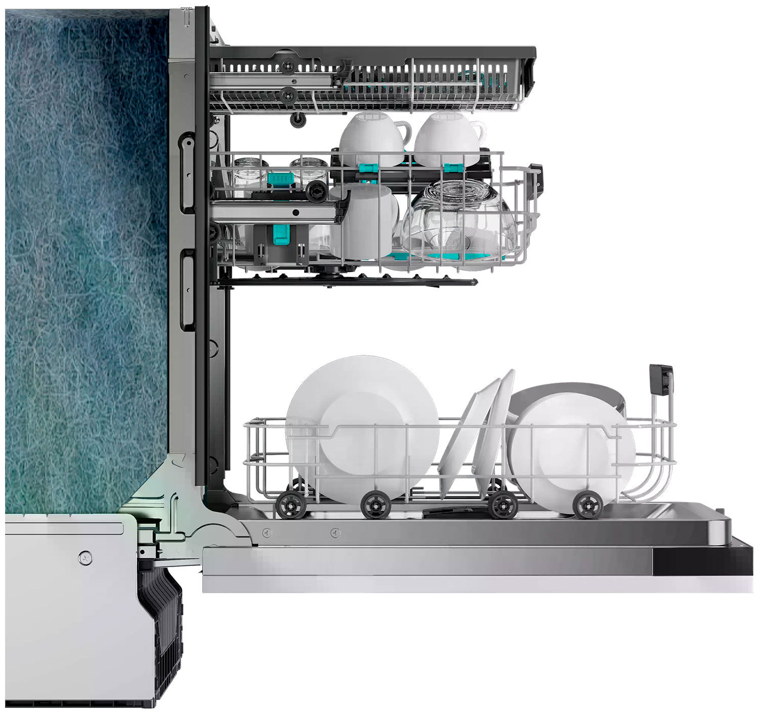 - Продуманная конструкция и удобство загрузки – 3 корзины, третий уровень загрузки, регулируемая по высоте корзина, складные держатели посуды и 3 разбрызгивателя обеспечивают максимальную гибкость при загрузке посуды любых форм и размеров. Система смягчения воды предотвращает образование накипи.