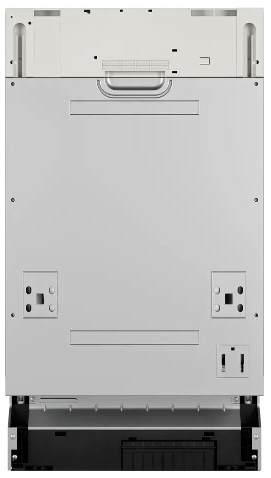 - Оснащение: регулируемая средняя корзина (2 положения), складные держатели тарелок, полка для чашек, 3 разбрызгивателя, съёмные разбрызгиватели