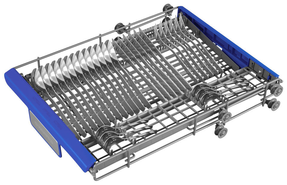 - Адаптивное пространство — регулируемая верхняя корзина для посуды любых размеров.