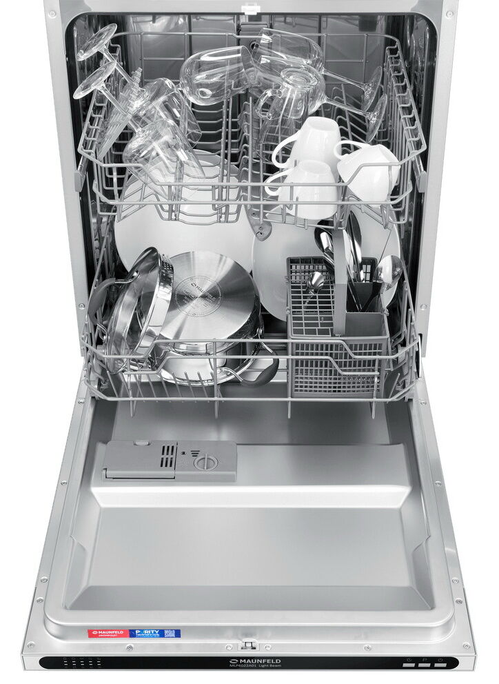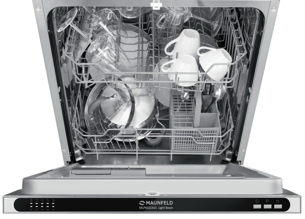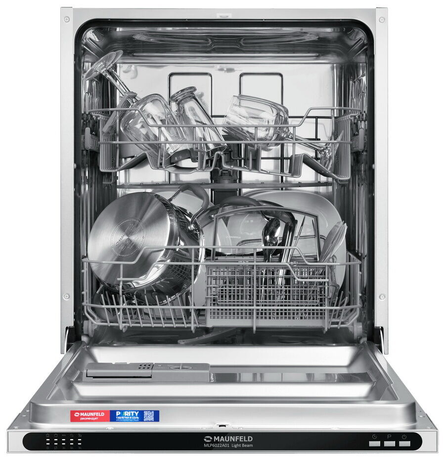 Встраиваемая посудомоечная машина Maunfeld MLP6022A01 Light Beam — классическая широкая модель с увеличенной вместимостью 12 комплектов