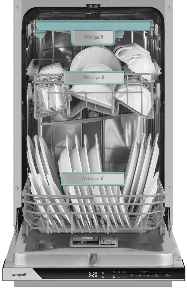 Встраиваемая посудомоечная машина Weissgauff BDW 4535 Autoopen Timer Floor – 45 см, 10 комплектов, проекция времени на полу и автооткрывание