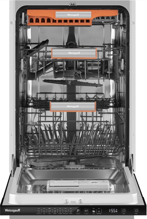 Встраиваемая посудомоечная машина Weissgauff BDW 4537 – 45 см, 11 комплектов, 3 корзины, луч на полу и 49 дБ