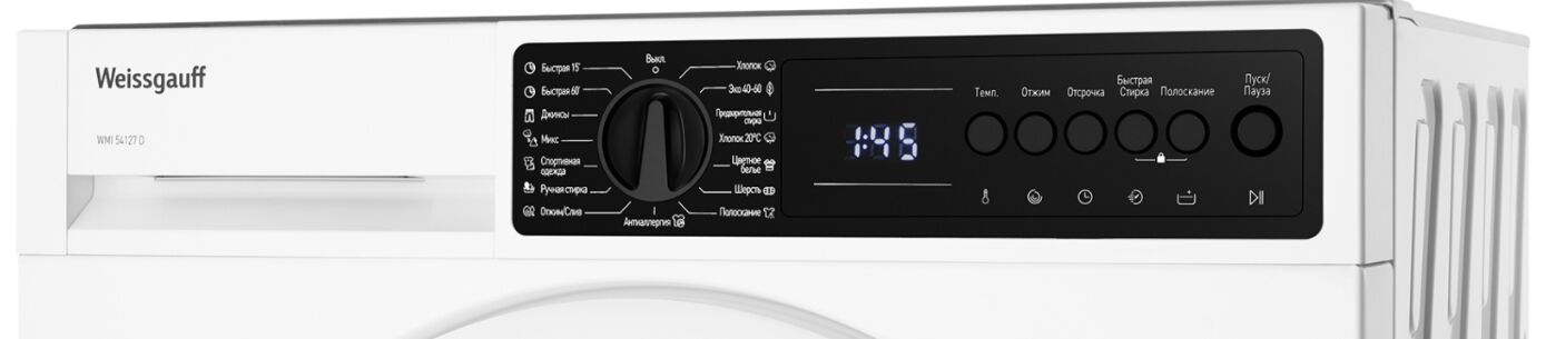 Встраиваемая стиральная машина Weissgauff WMI 54127 D – загрузка 7 кг, 15 программ, класс A+++ и режим «Антиаллергия»